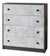 Comodă cu patru sertare practice pentru depozitarea hainelor și a altor lucruri. Sertarele au mânere pătrate din plastic.