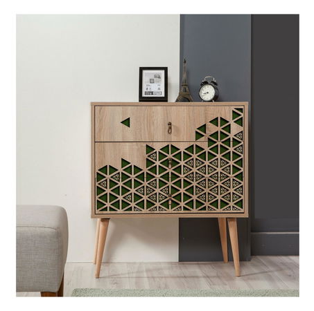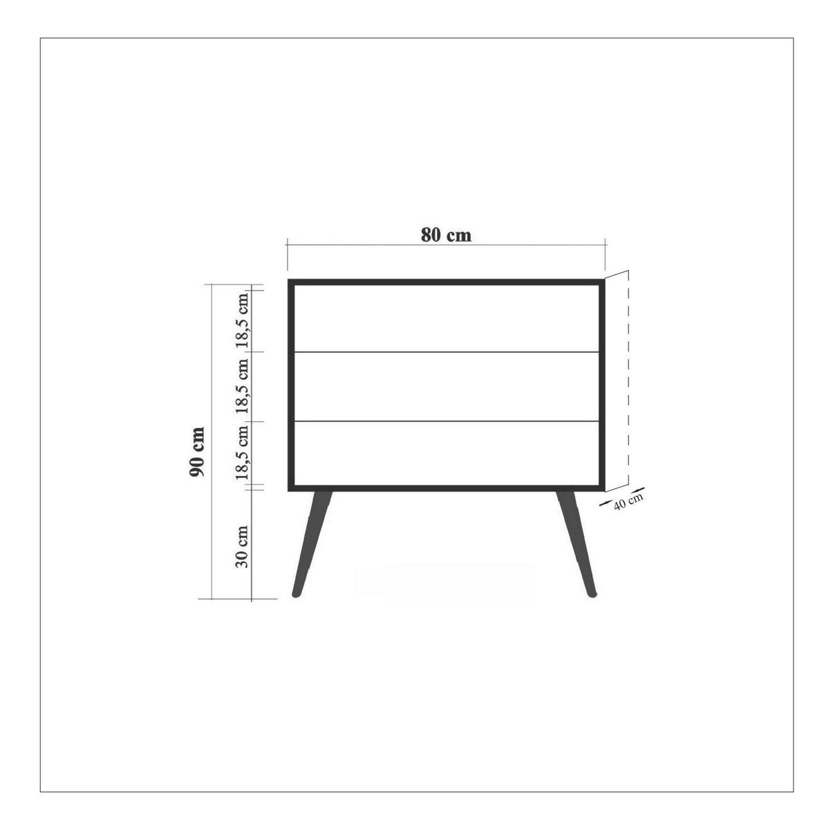 grosime: 18 mm, picioare crap, mânere metalice, strat UV, lățime: 80 cm, înălțime: 90 cm, adâncime: 40 cm, înălțime sertare: 18,5 cm, înălțime picioare: 30 cm