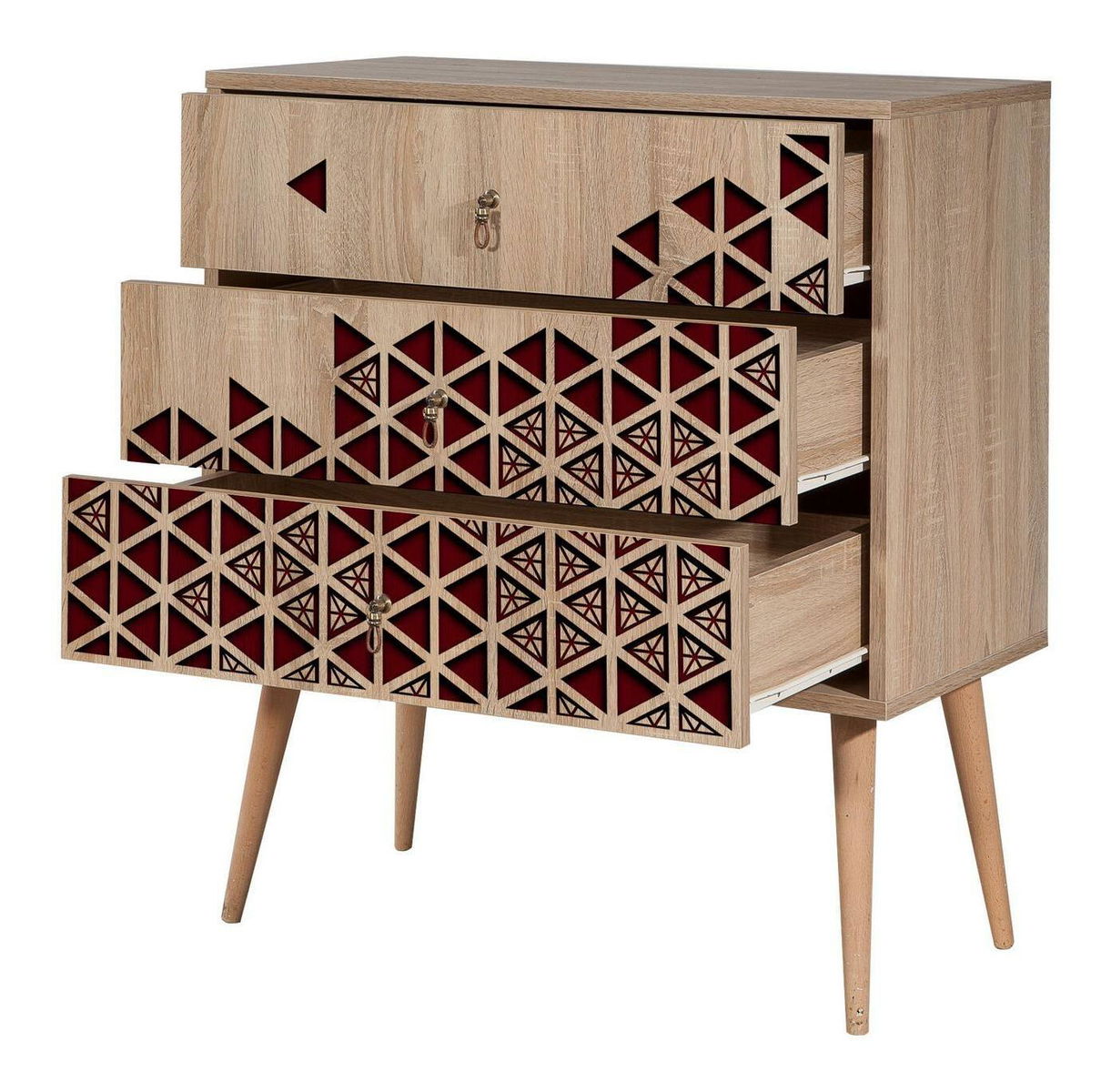 grosime: 18 mm, picioare crap, mânere metalice, strat UV, lățime: 80 cm, înălțime: 90 cm, adâncime: 40 cm, înălțime sertare: 18,5 cm, înălțime picioare: 30 cm