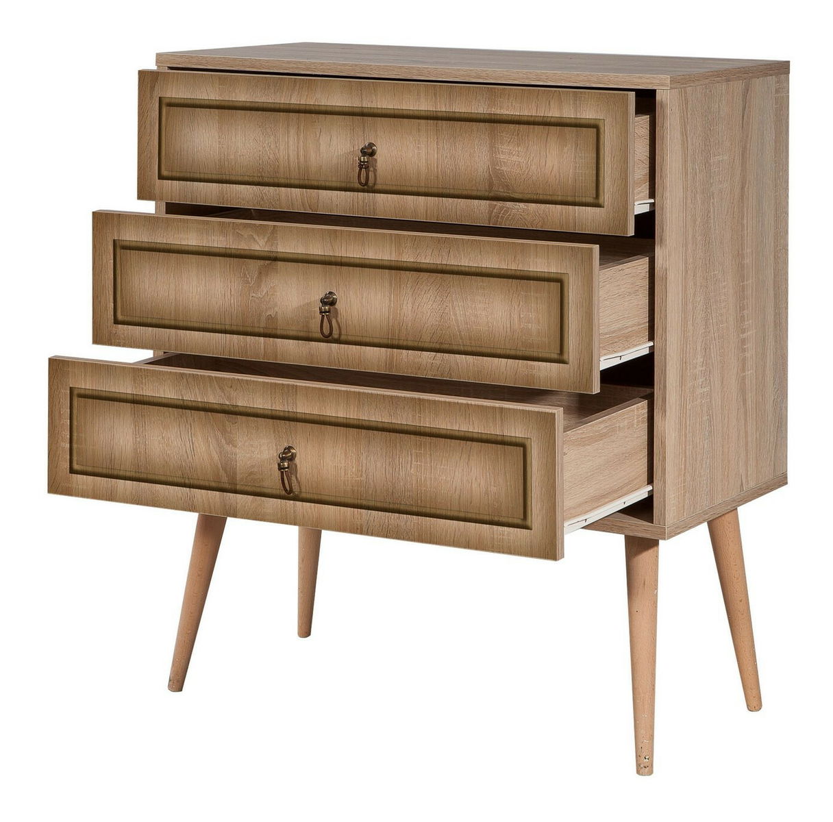 grosime: 18 mm, picioare crap, mânere metalice, strat UV, lățime: 80 cm, înălțime: 90 cm, adâncime: 40 cm, înălțime sertare: 18,5 cm, înălțime picioare: 30 cm