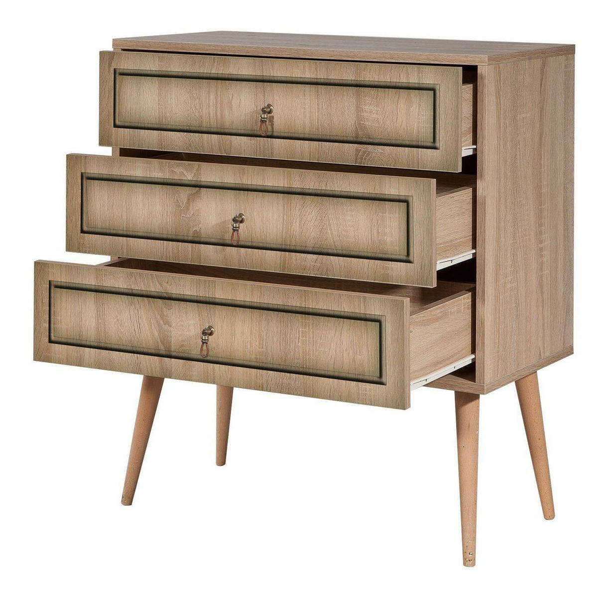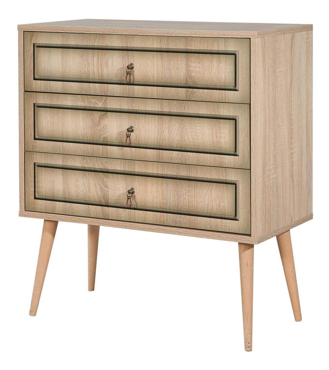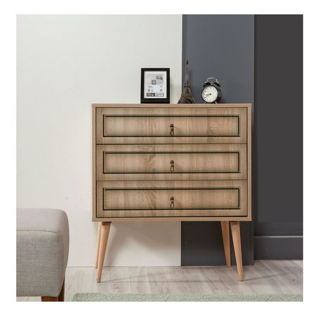 grosime: 18 mm, picioare crap, mânere metalice, strat UV, lățime: 80 cm, înălțime: 90 cm, adâncime: 40 cm, înălțime sertare: 18,5 cm, înălțime picioare: 30 cm