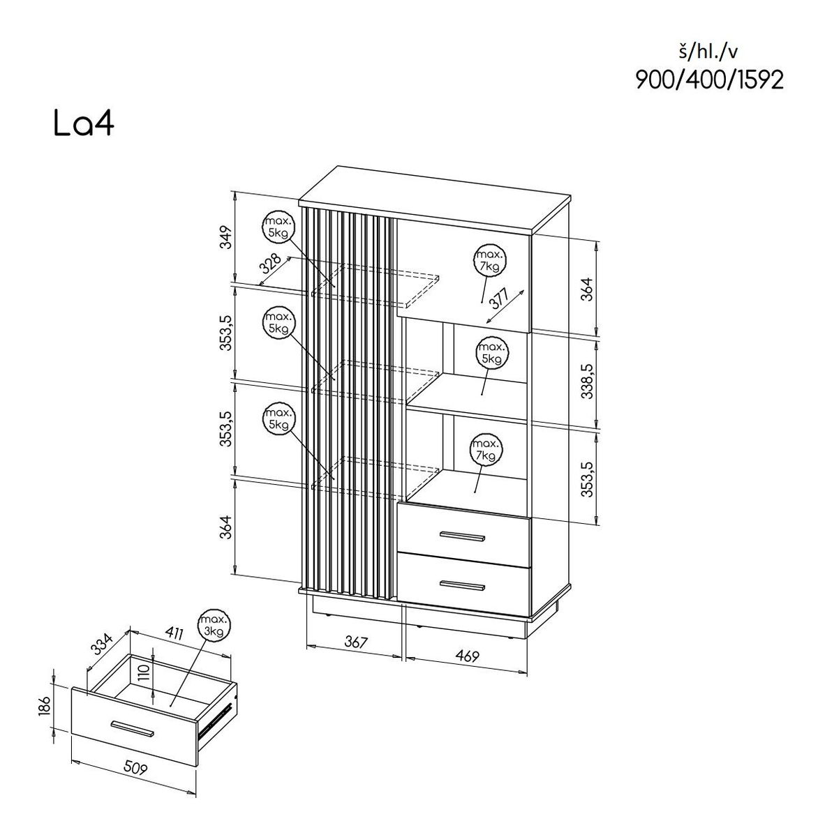 Comodă typ LA4 Laticia (negru mat + Stejar wotan)