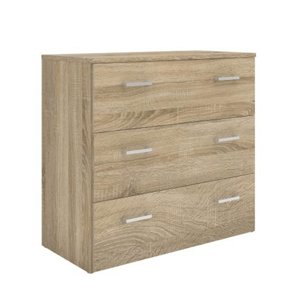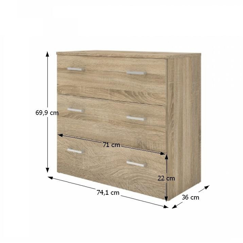 Comoda modernă și practică are trei sertare, care se deschid ușor cu ajutorul mânerelor. Se potrivește perfect în dormitor, camere de zi, birou sau vestibule. Produsul va fi livrat demontat.