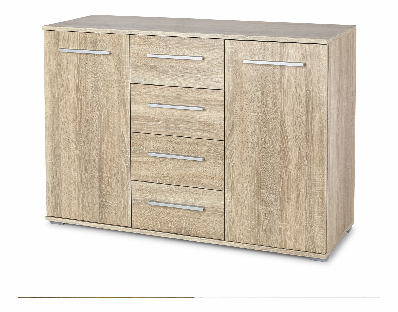- Design modern cu două uși laterale generoase și patru sertare centrale spațioase, ideale pentru depozitarea obiectelor personale, documentelor sau accesoriilor casnice.