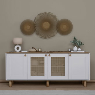 Comodele din patru piese se pot combina fără dificultate cu o varietate de stiluri și alte piese de mobilier. De exemplu, pot fi asociate cu o măsuță de cafea din sticlă în living sau cu un pat din lemn masiv în dormitor. În nuanțe neutre precum alb sau gri, se potrivesc cu ușurință în diverse scheme cromatice, contribuind la crearea unei atmosfere armonioase.