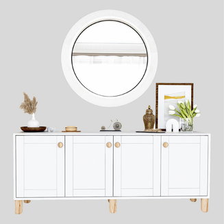 Comodele din patru piese se pot combina fără dificultate cu o varietate de stiluri și alte piese de mobilier. De exemplu, pot fi asociate cu o măsuță de cafea din sticlă în living sau cu un pat din lemn masiv în dormitor. În nuanțe neutre precum alb sau gri, se potrivesc cu ușurință în diverse scheme cromatice, contribuind la crearea unei atmosfere armonioase.
