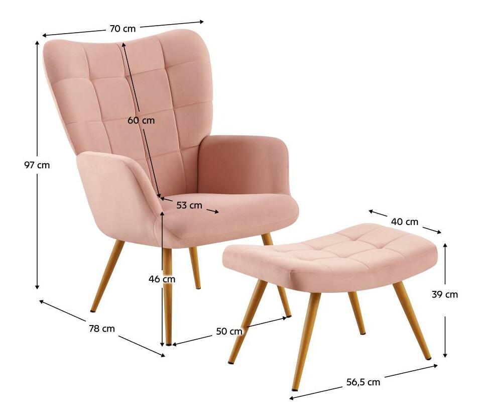 Cu suport picioare Halago (roz + stejar)