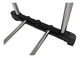 Suport mobil practic cu două brațe, fabricat din oțel inoxidabil și bază din plastic negru.
