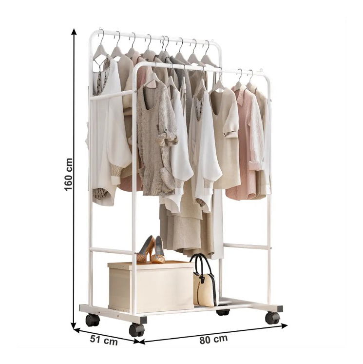 Cuierul pe roți Illys este o opțiune practică și eficientă pentru organizarea spațiului din garderoba ta. Cu o structură dublă și o înălțime de 160 cm, permite agățarea hainelor pe două rânduri, maximizând locul disponibil.
