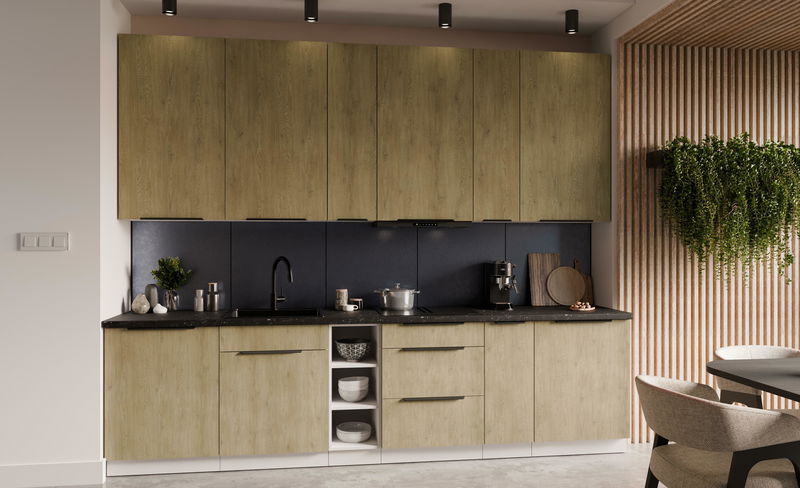 Dulap bucătărie pentru alimente Carminia 40 DK-210 2F (stejar cremona + negru)