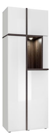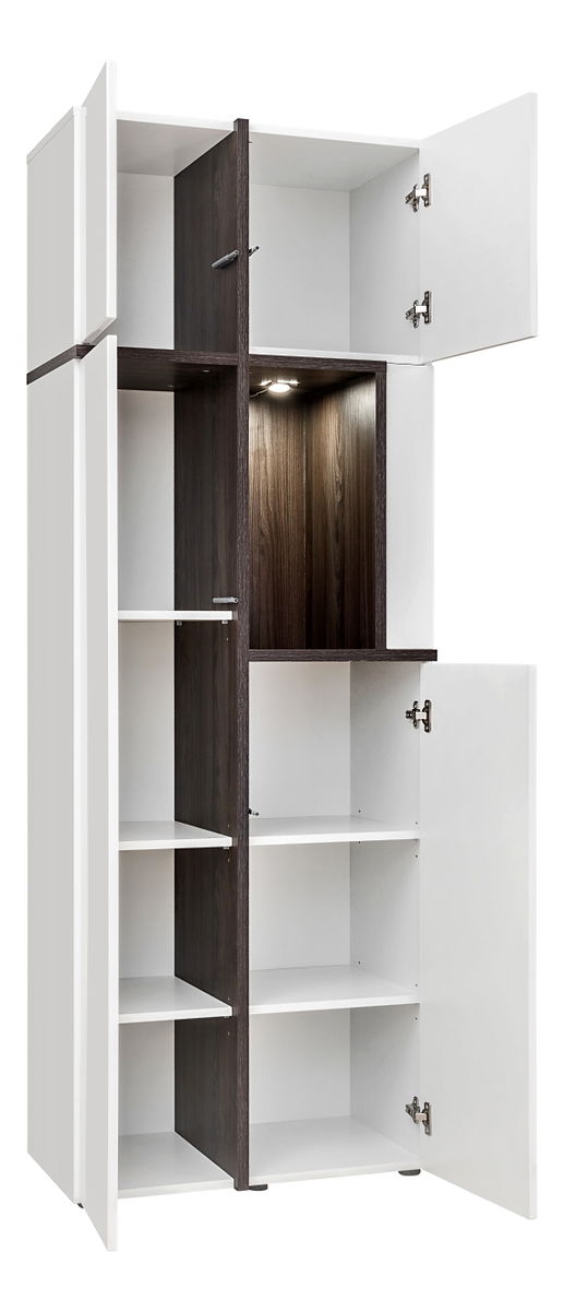 Dulapul oferă multiple spații de depozitare, inclusiv o nișă iluminată pentru expunerea obiectelor decorative sau a cărților, adăugând personalitate interiorului. Materialele de calitate superioară și finisajele lucioase asigură rezistență îndelungată și ușurință în întreținere.
