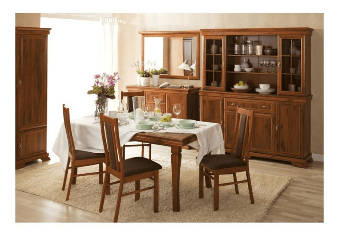 Colecția de mobilier Kraz va fi cu siguranță alegerea potrivită pentru cei cărora le place stilul tradițional. Are un design mai masiv, elegant, cu plinte decorative și mânere metalice. La alegere multe pises, de la vitrine la comode, dulapuri, mese PC sau mese TV.