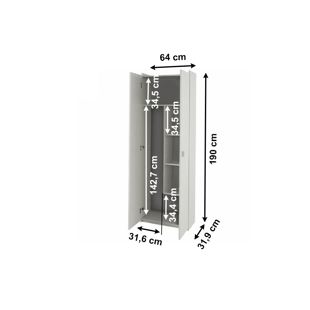 Dulapul combinat care oferă suficient spațiu de depozitare. Este soluția excelentă pentru spații mai mici. Interiorul dulapului este format din rafturi și un raft superior.