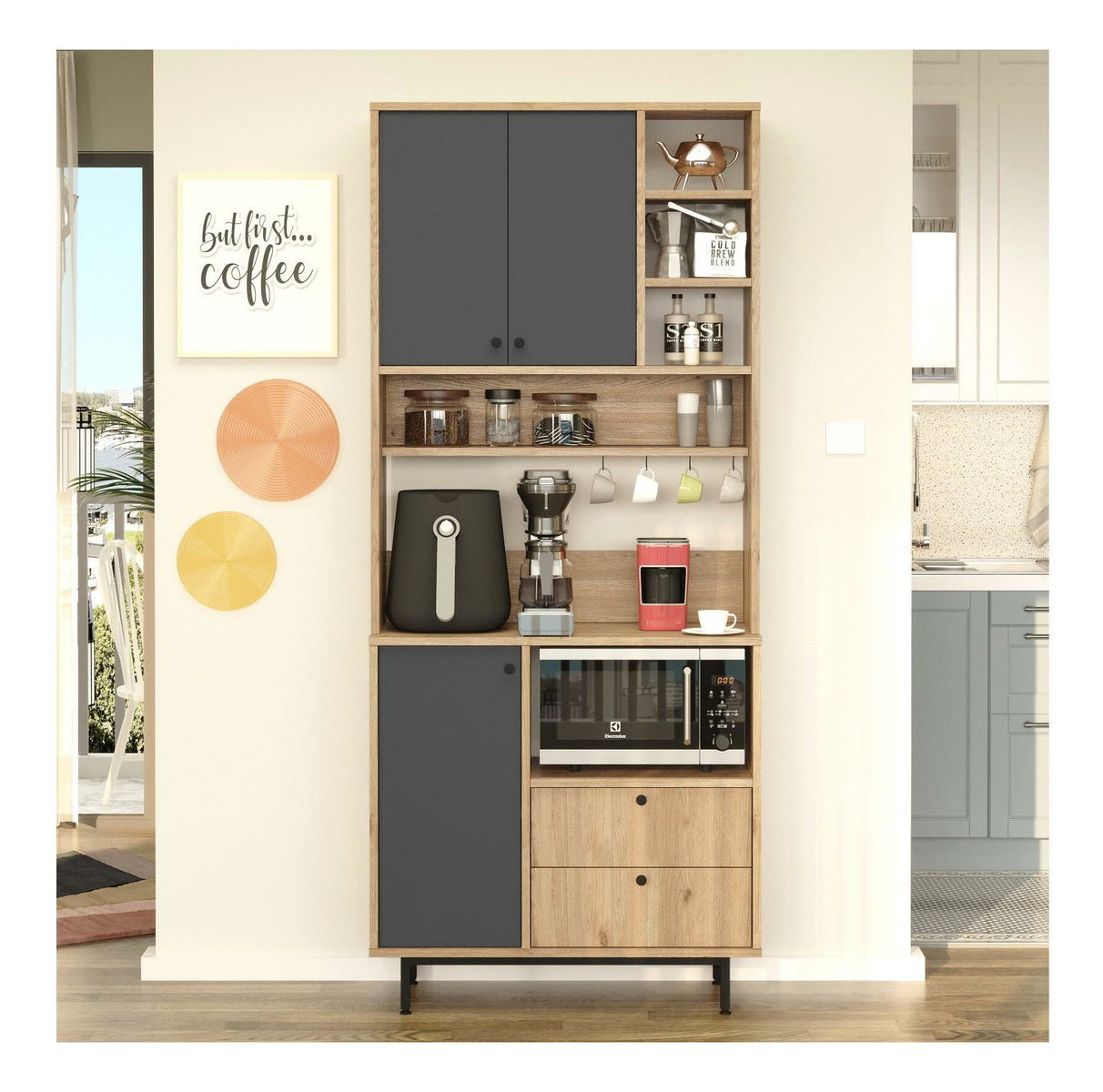 Dulap cu rafturi Rebutia 6 (stejar + antracit)