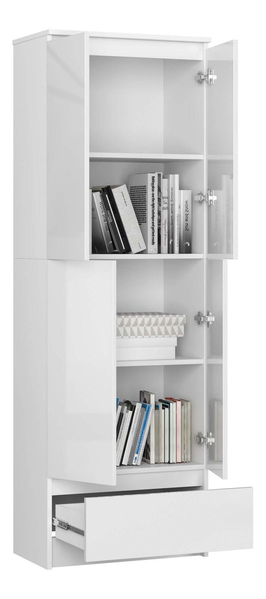 Dulap cu rafturi Renzo (Alb + alb lucios)
