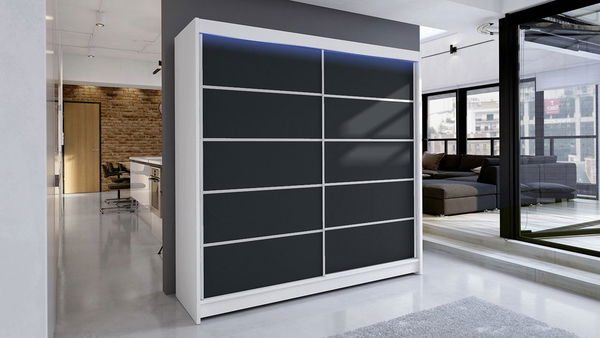 Dulap cu uși glisante Bastian IV (alb + negru) (iluminare LED RGB colorat)