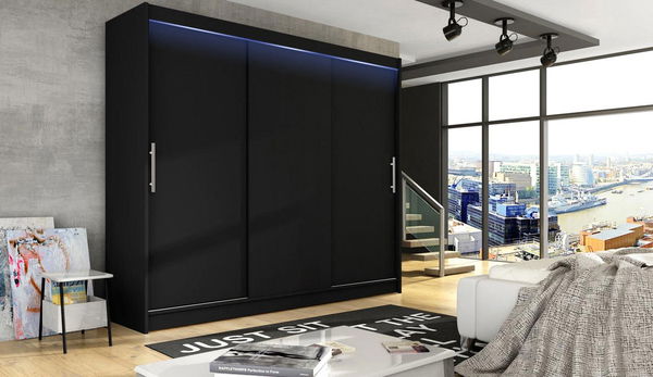 Dulap cu usi glisante Dorian II (negru) (iluminare LED RGB colorat)