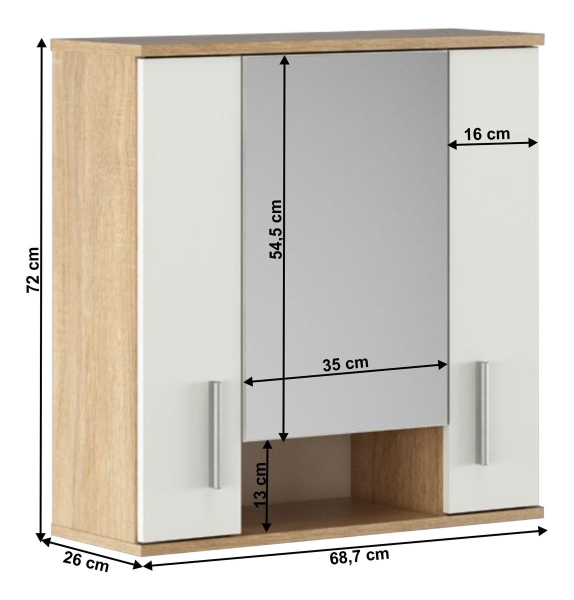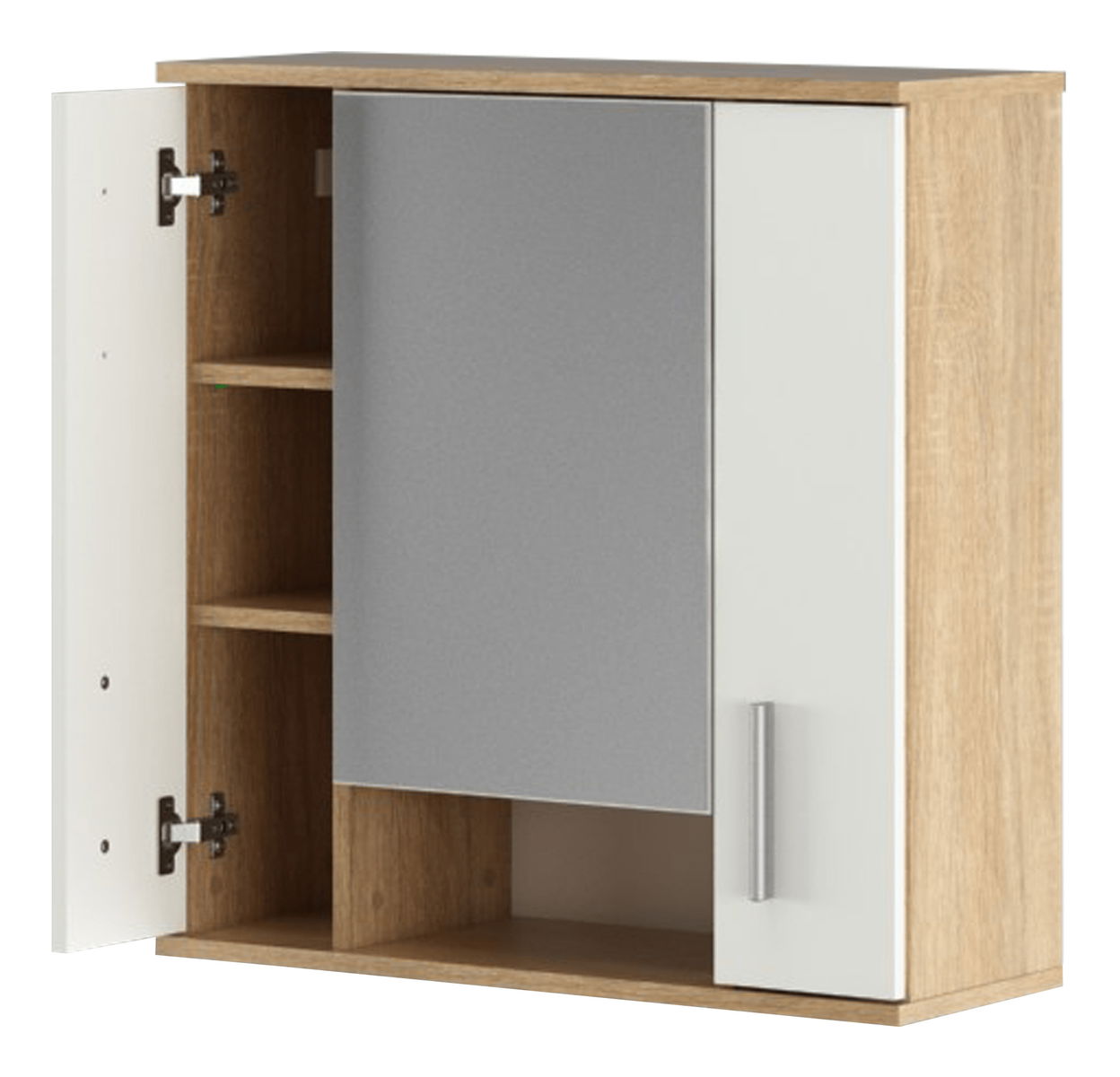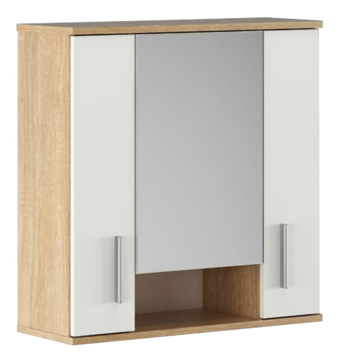 Dulap de baie suspendat cu oglindă Leah 01 (stejar sonoma + alb matná)