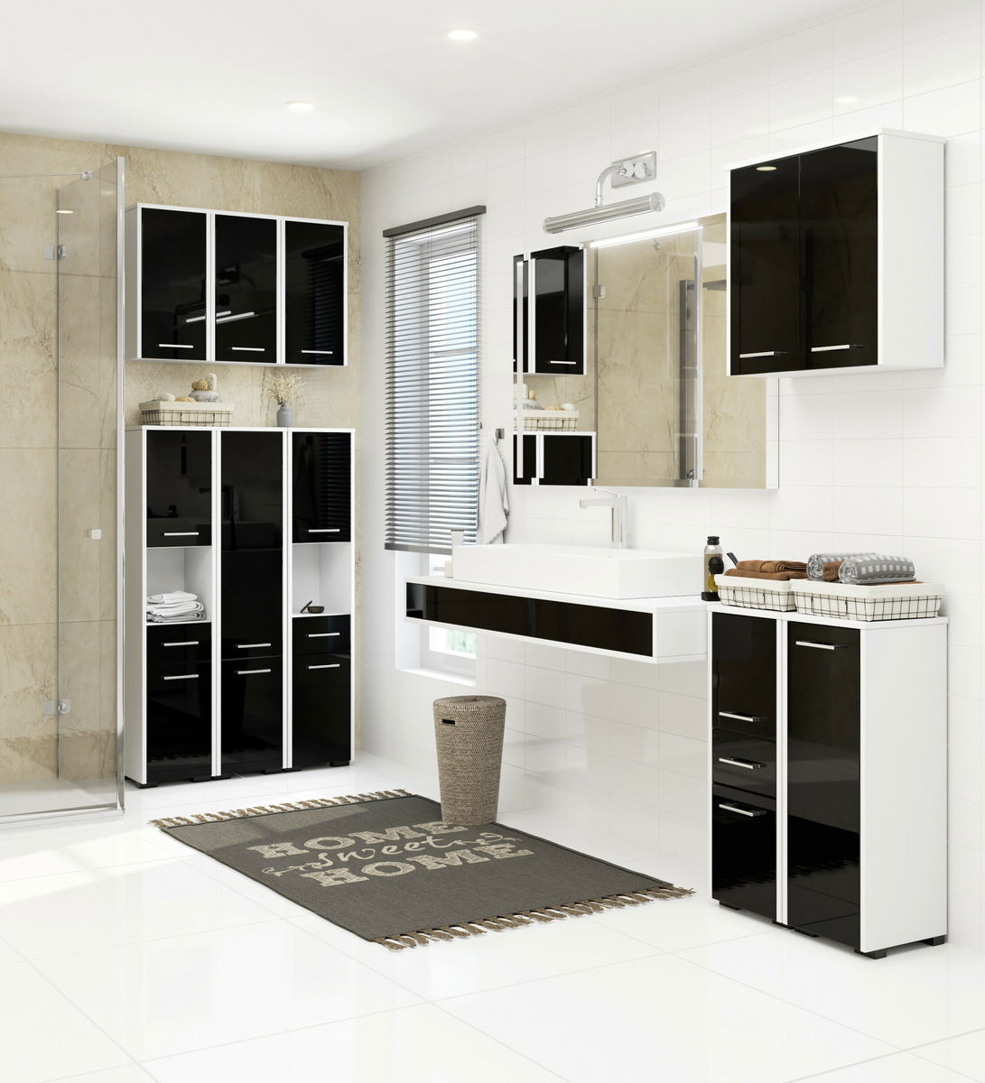 Dulap de baie suspendat Farid TYP5 (Alb + Negru lucios)
