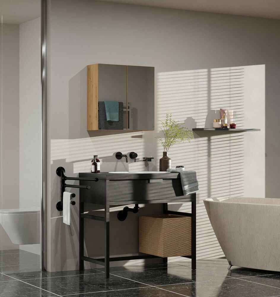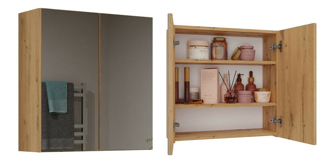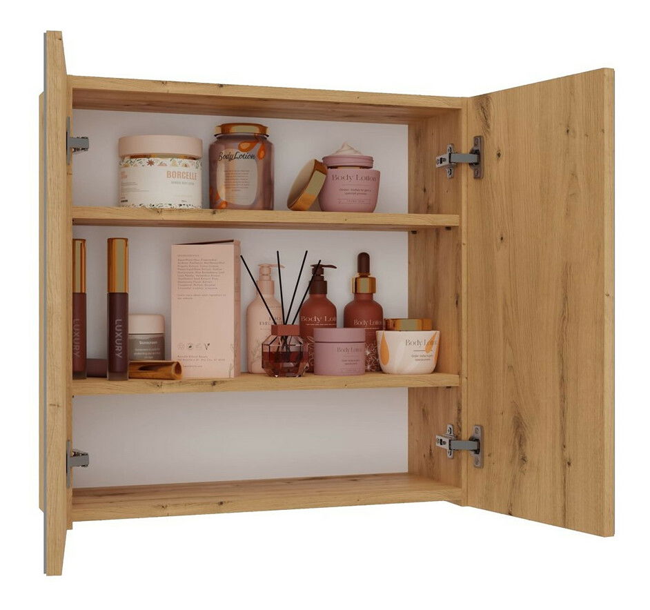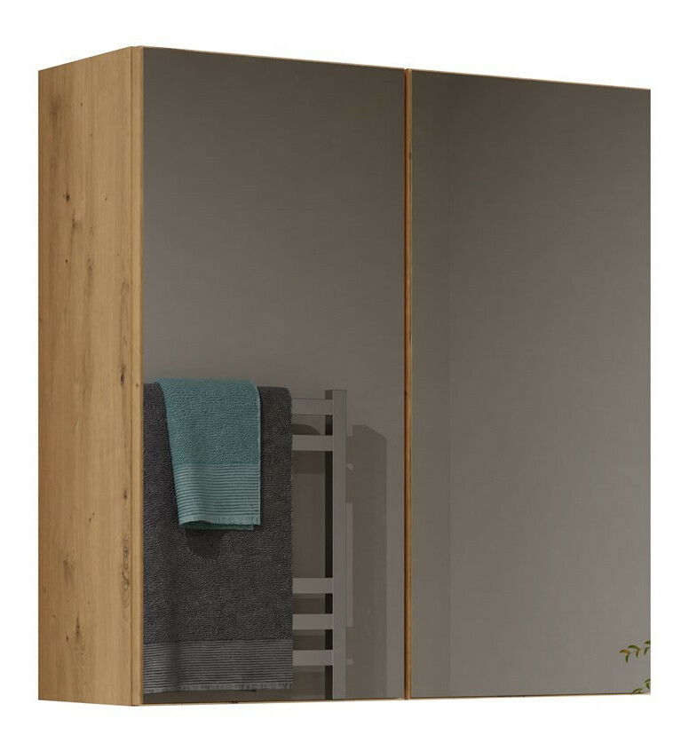 Dulap de baie suspendat Perdieron 4 (stejar artisan) (cu oglindă)
