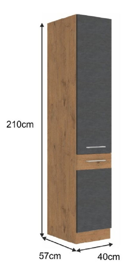Dulap de bucătărie pentru alimente 40 DK-210 2F Velaga (gri mat + stejar lancelot)