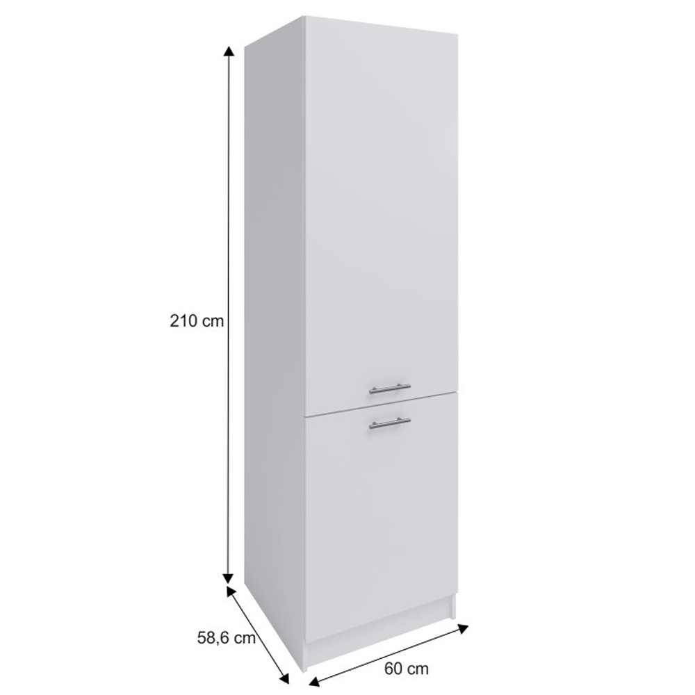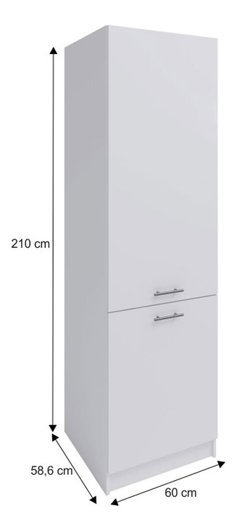 Dulap de bucătărie pentru alimente cu o lățime de 60 cm și înălțime de 210 cm. Este echipat cu două uși care se închid cu ajutorul unui sistem modern silențios, cu mânere din metal.