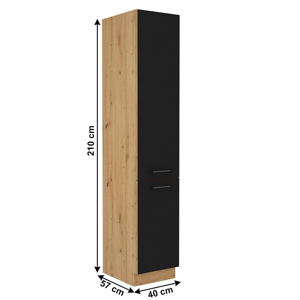 Dulap de bucătărie pentru alimente Meriel 40 DK 210 2F (negru + stejar artisan)