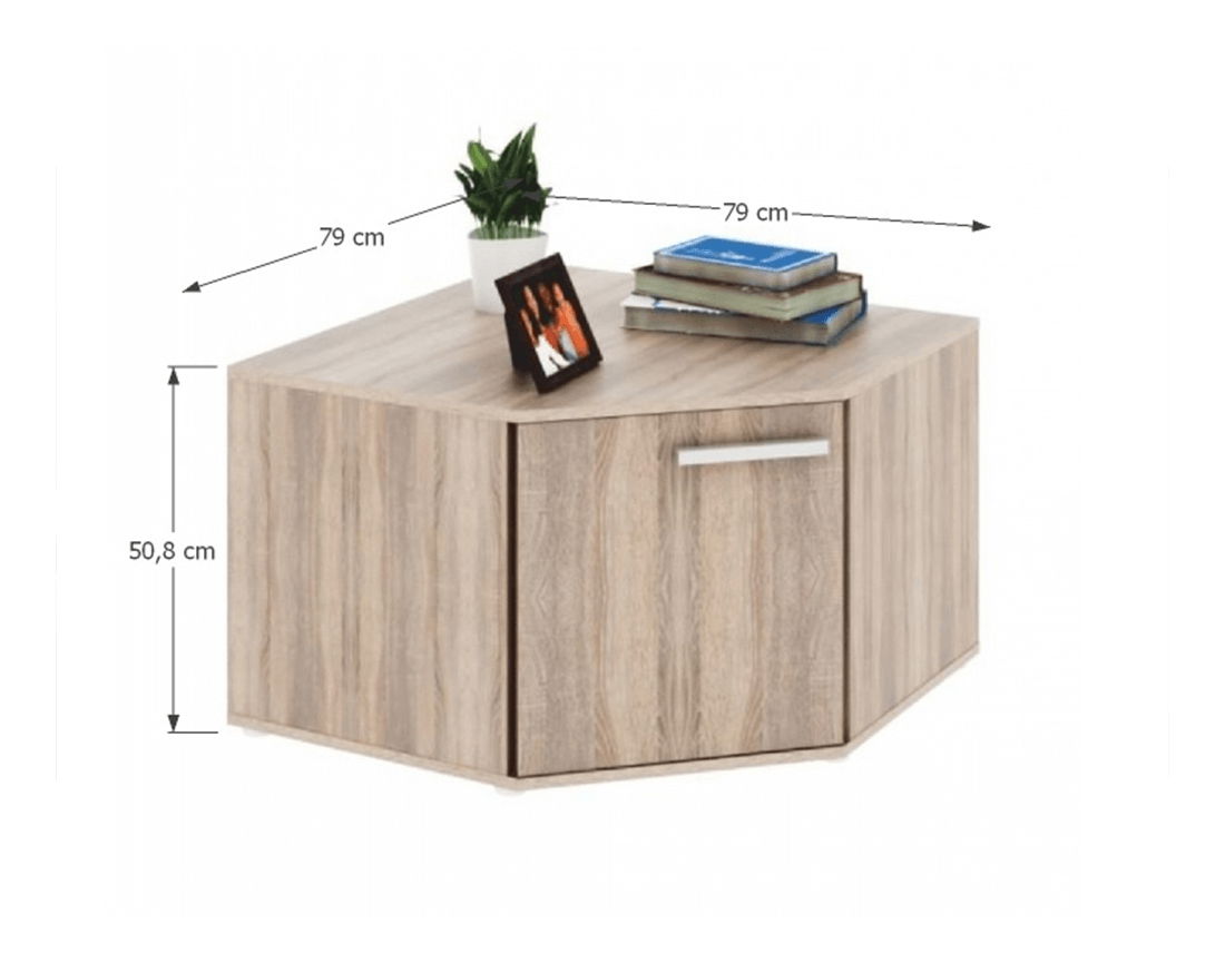 Dulap mai mic, de colț, cu uși într-o versiune color de stejar sonoma. Pe acest dulap puteți plasa alte corpuri de colț sau articole și astfel puteți aranja în întregime livingul dvs.