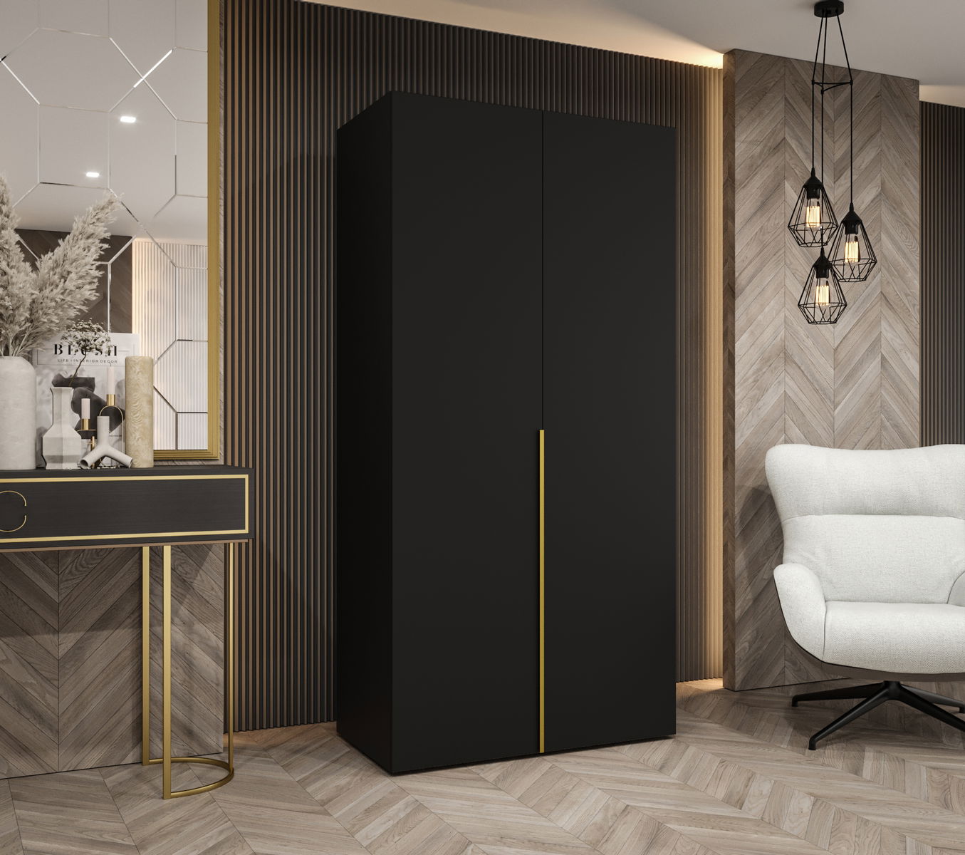 Dulap de haine 100 cm Alice 1 (Negru + Auriu)