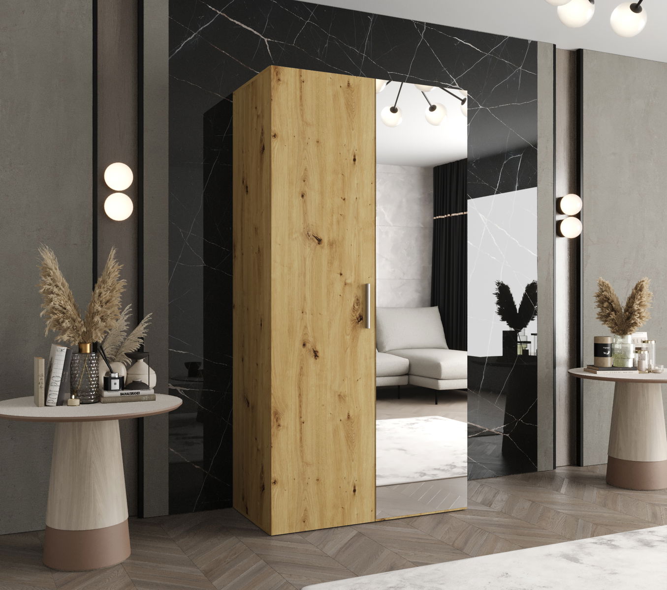Dulap de haine 100 cm Borry 2 (Stejar artisan + Argintiu)