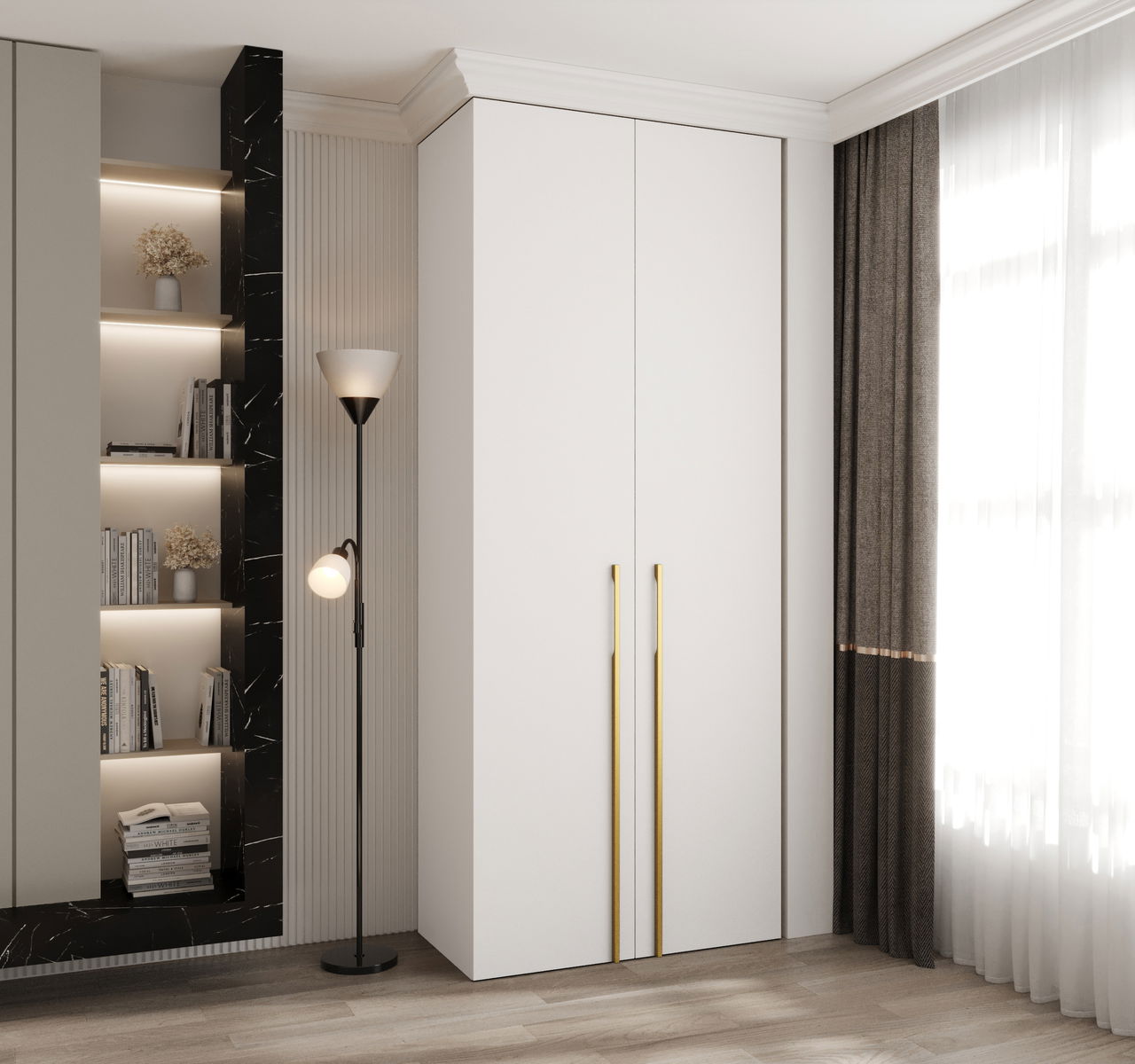 Dulap de haine 100 cm Carmela 50-3 (alb + Auriu)