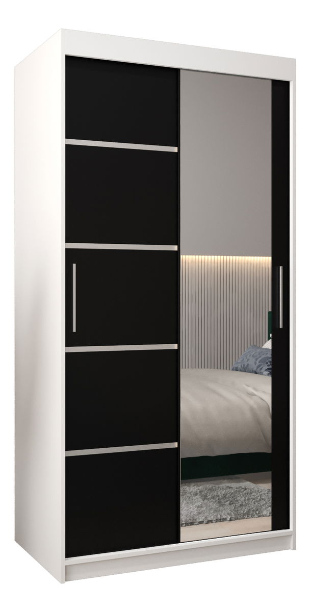 Dulap de haine 100 cm cu oglindă Verika 2 100 (alb + negru)