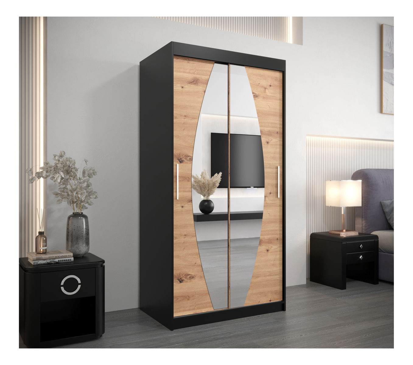 Dulap de haine 100 cm Eclipse (Negru mat + Stejar artisan)