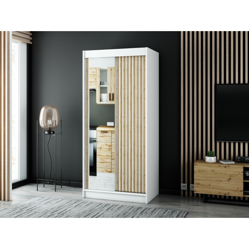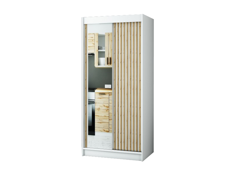 - Dulap de haine 100 cm Ladonna 2 (alb mat) (cu oglindă)