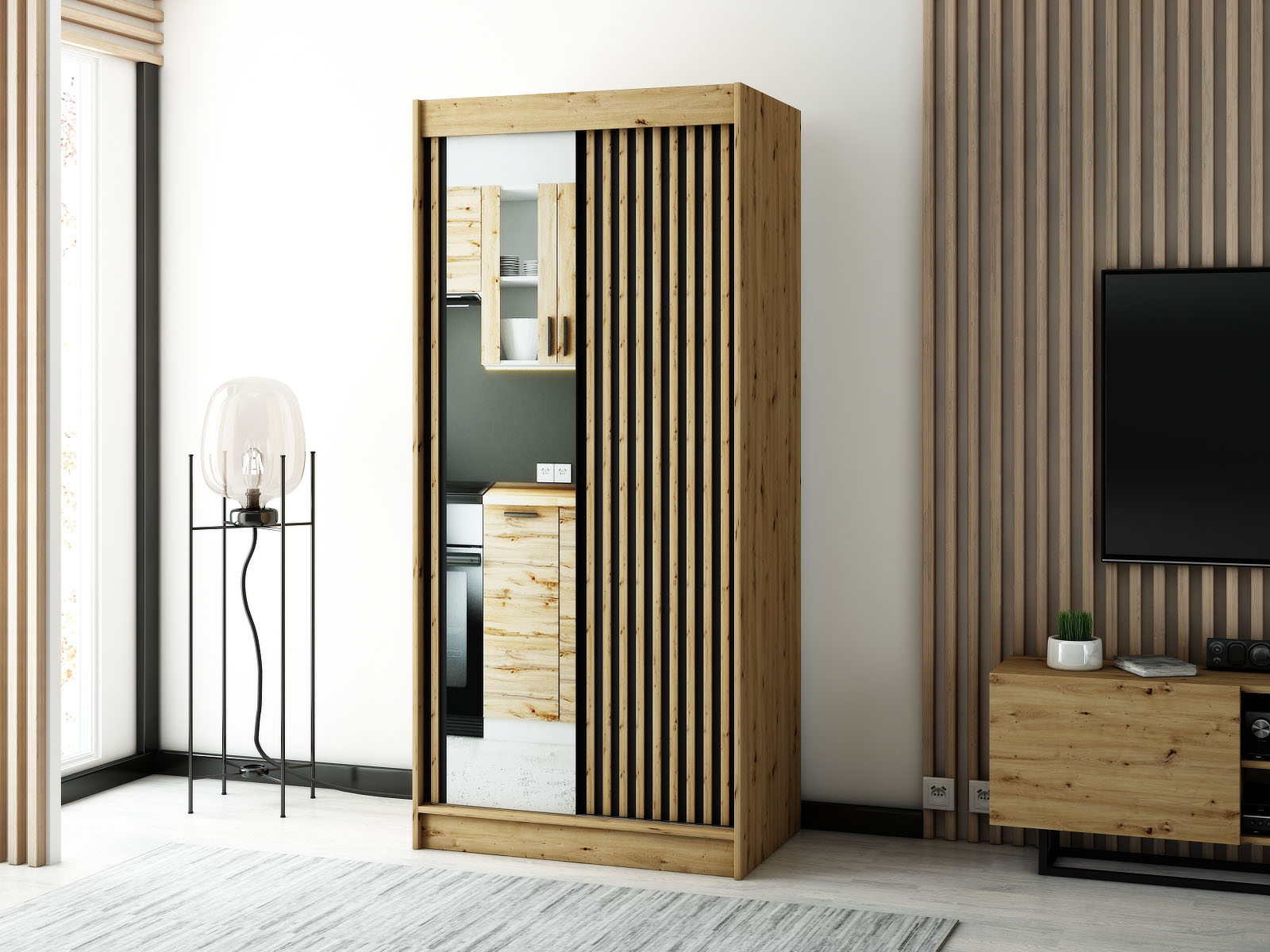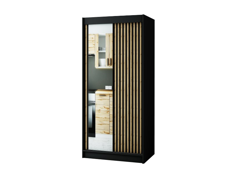 - Dulap de haine 100 cm Ladonna 2 (negru mat) (cu oglindă)