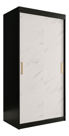 Dulap de haine 100 cm Marbelo T (mat negru + marmură albă)
