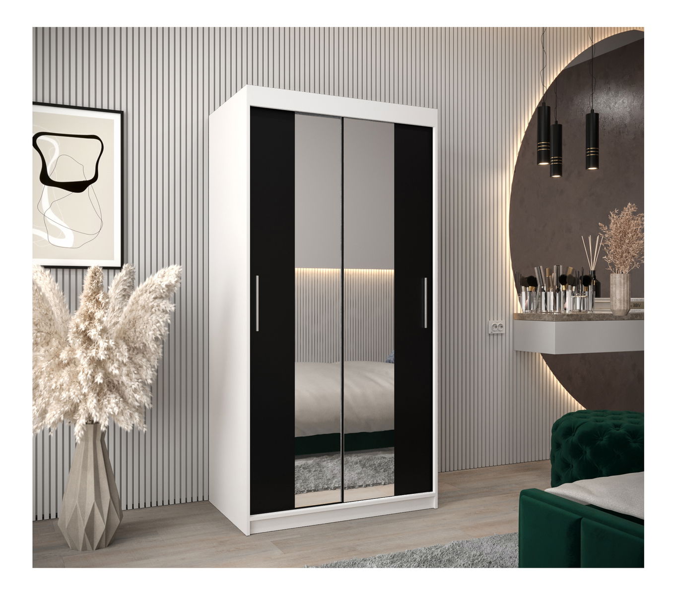Dulap de haine 100 cm Toki 1 (alb mat + negru mat)