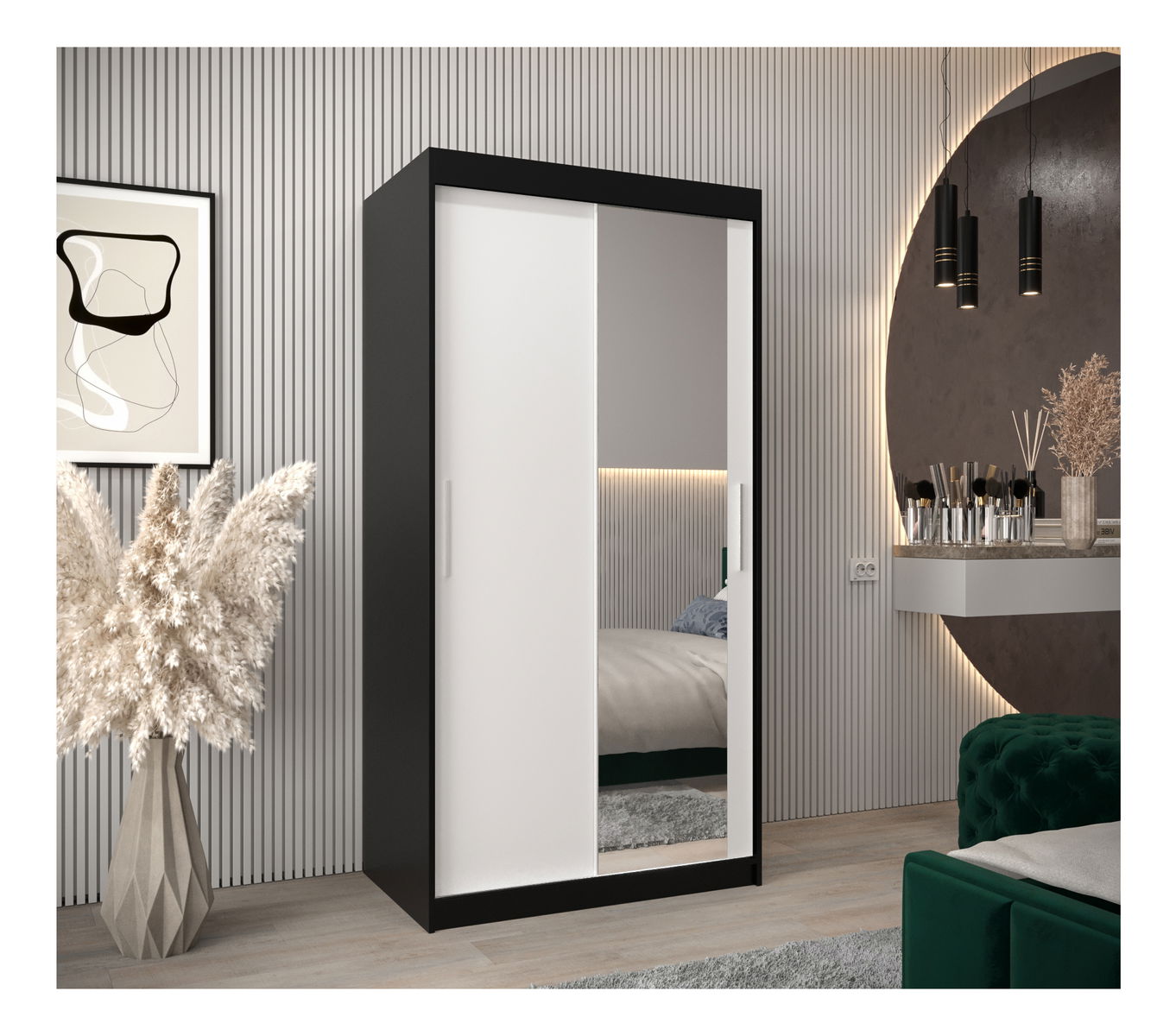 Dulap de haine 100 cm Toki 2 (negru mat + alb mat)
