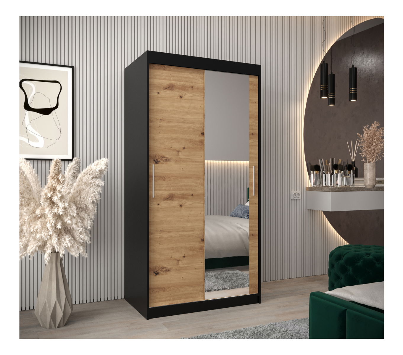 Dulap de haine 100 cm Toki 2 (negru mat + stejar artisan)