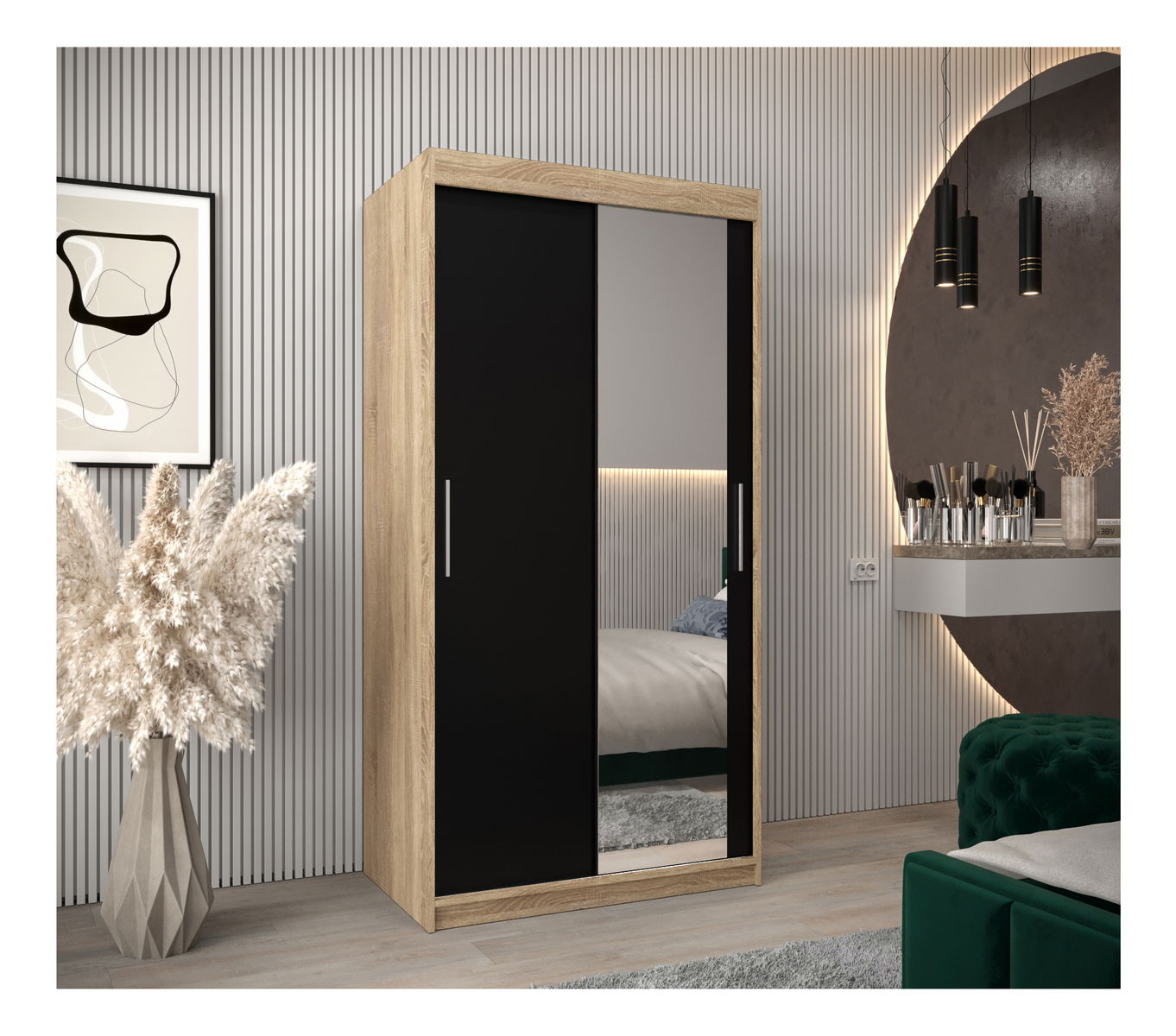 Dulap de haine 100 cm Toki 2 (stejar sonoma + negru mat)