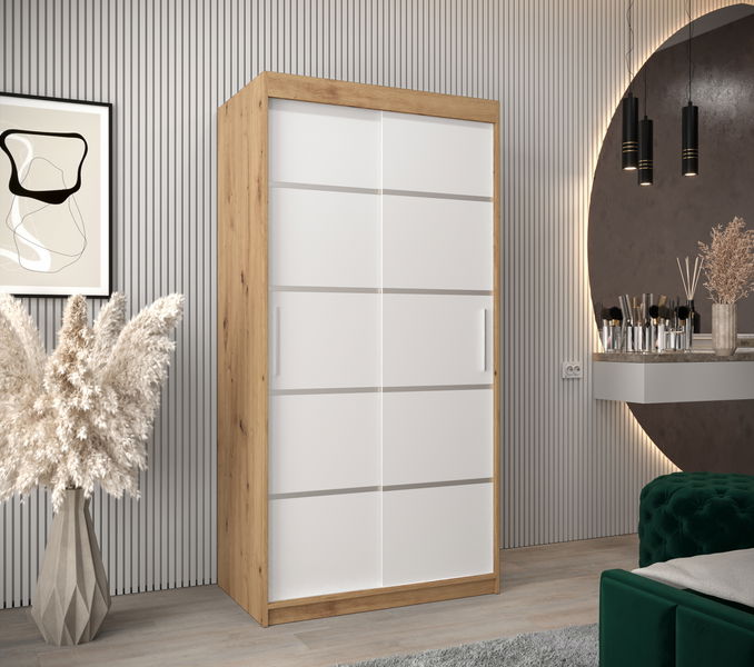 Dulap de haine 100 cm Verika 1 100 (stejar artisan + alb)