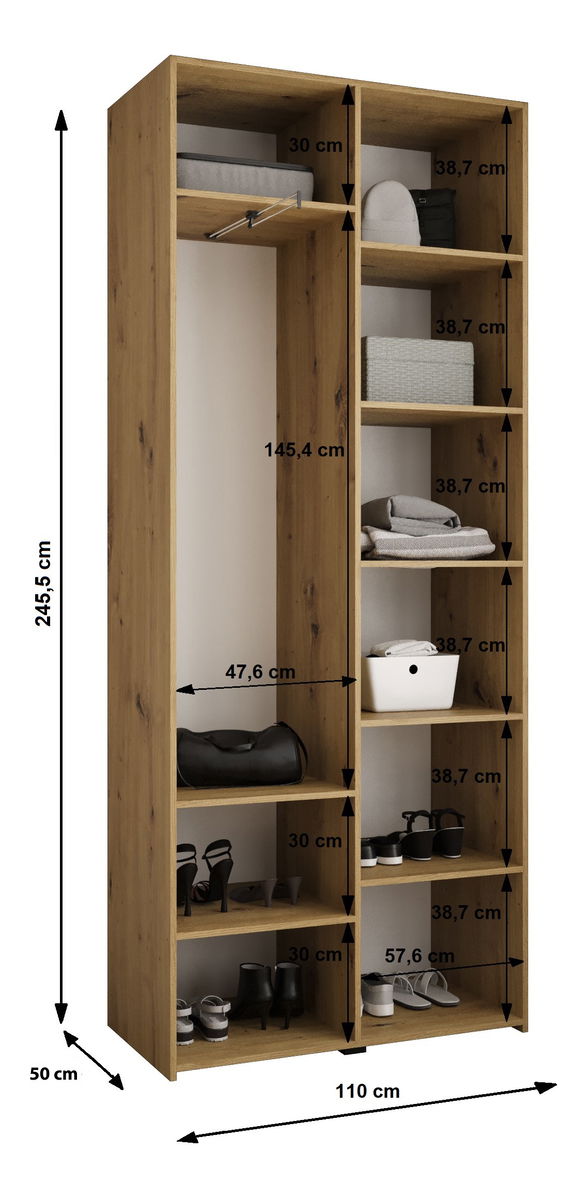 Dulap de haine 110 cm Carmela 50-3 (Cașmir + Negru)