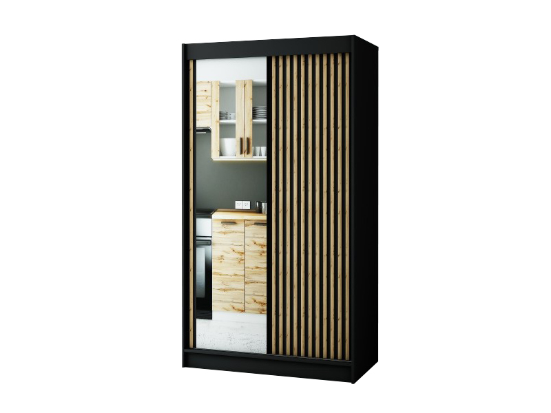 Dulap de haine 120 cm Ladonna 2 (negru mat) (cu oglindă)