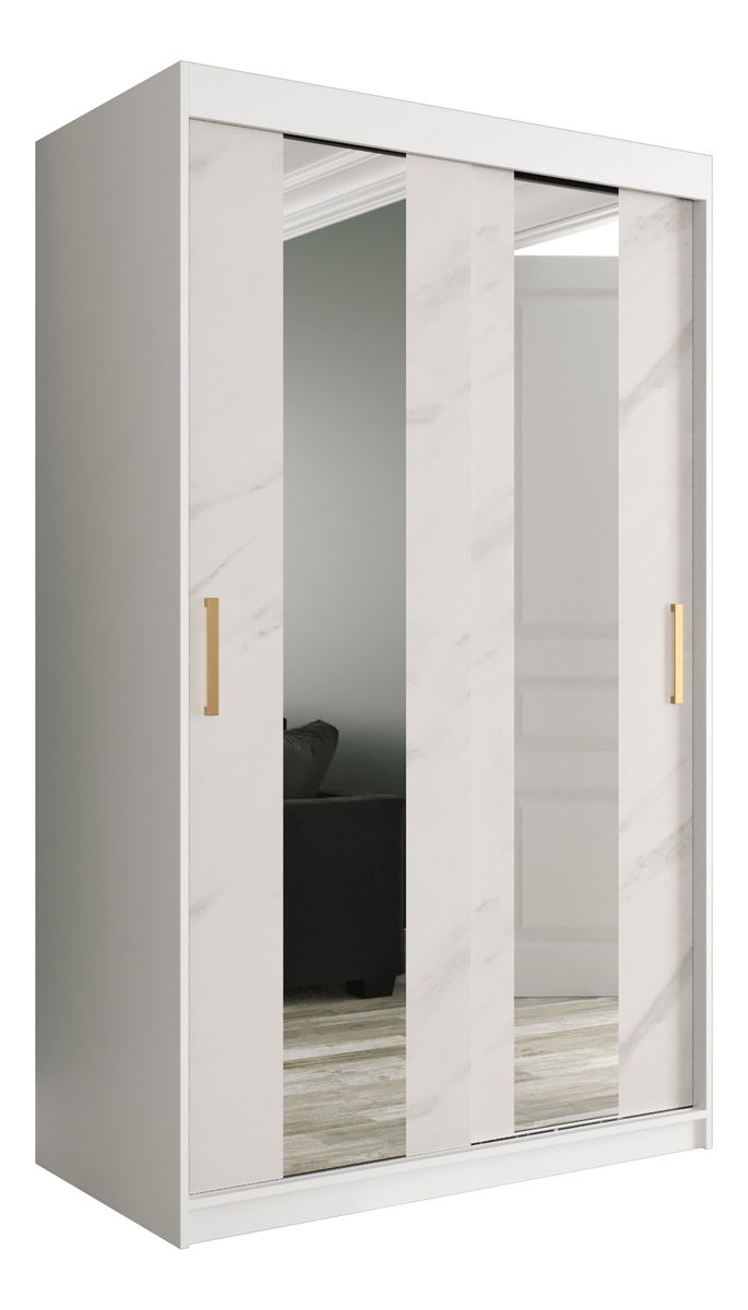 Dulap de haine 120 cm Marbelo P (mat alb + marmură albă)
