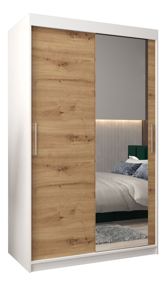 Dulap de haine 120 cm Toki 2 (alb mat + stejar artisan)