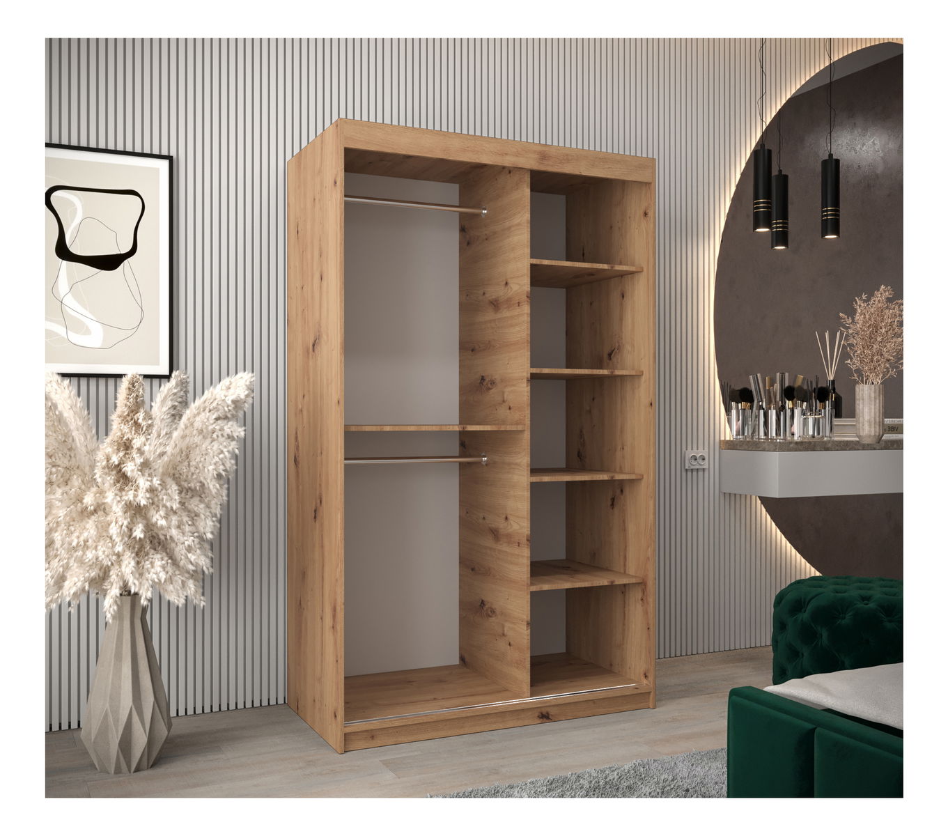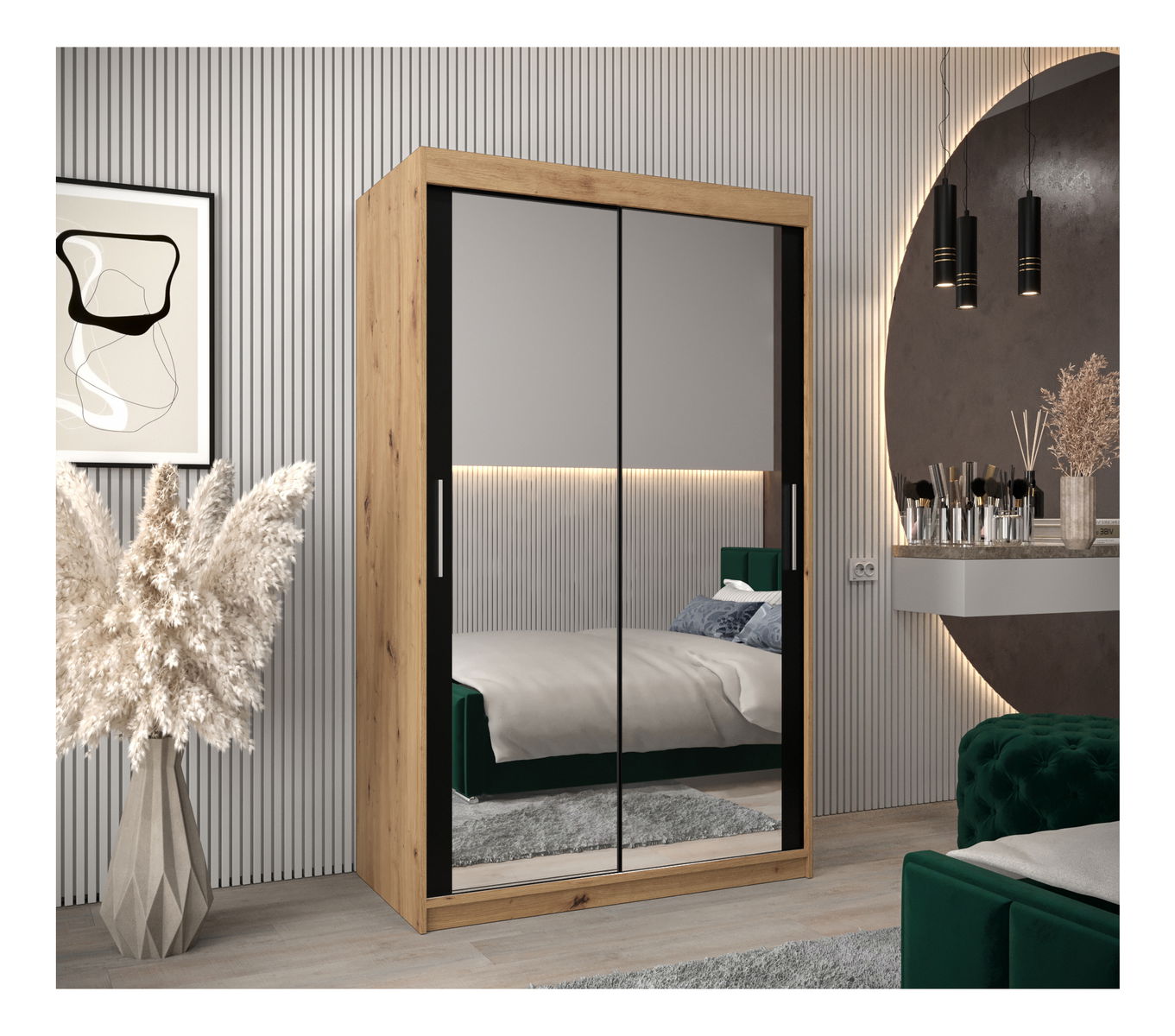 Dulap de haine 120 cm Toki 3 (stejar artisan + negru mat)