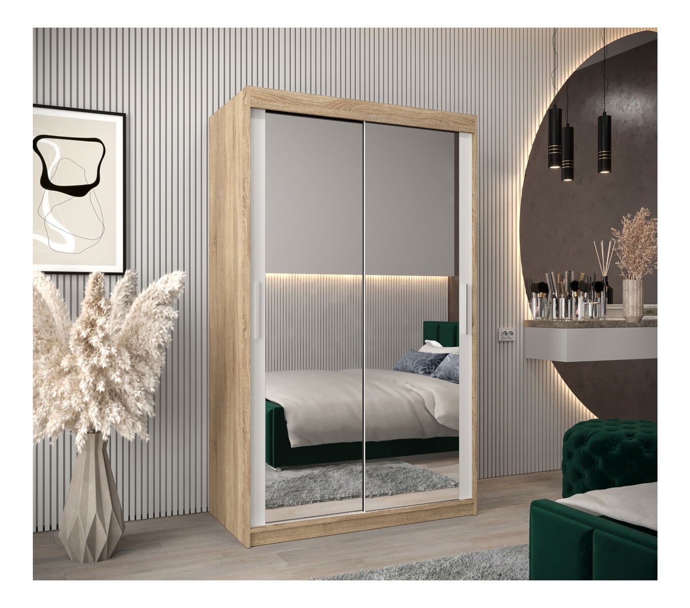 Dulap de haine 120 cm Toki 3 (stejar sonoma + alb mat)