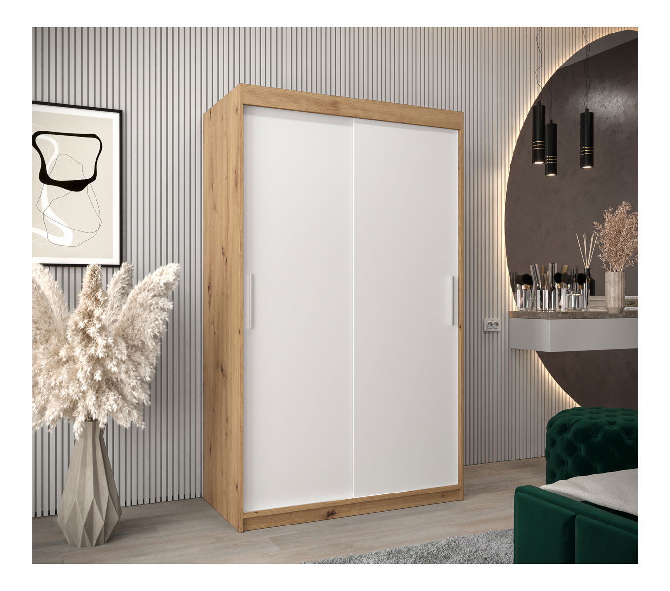 Dulap de haine 120 cm Toki (stejar artisan + alb mat)