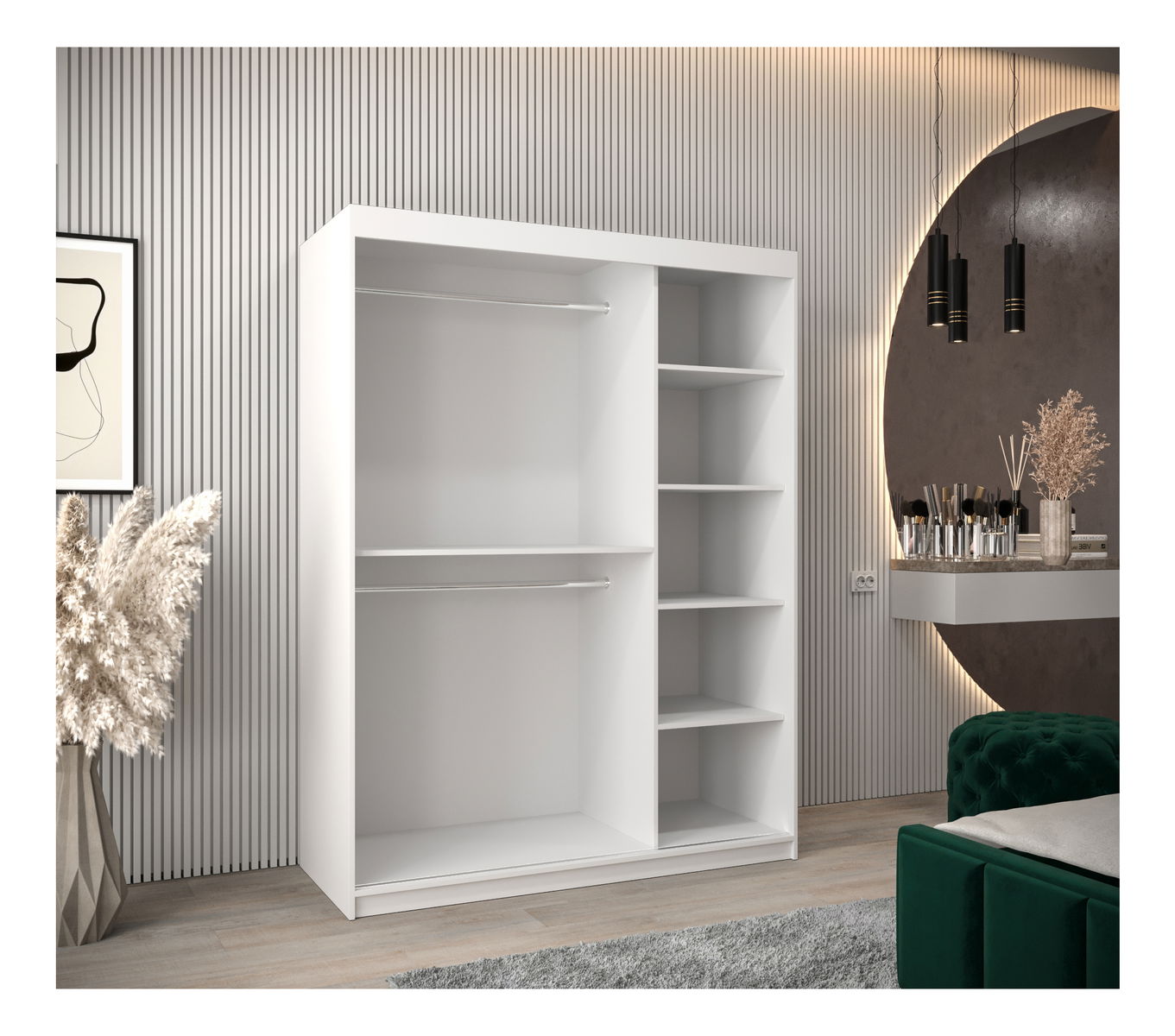 Dulap de haine 150 cm Eclipse (Alb mat + Negru mat)