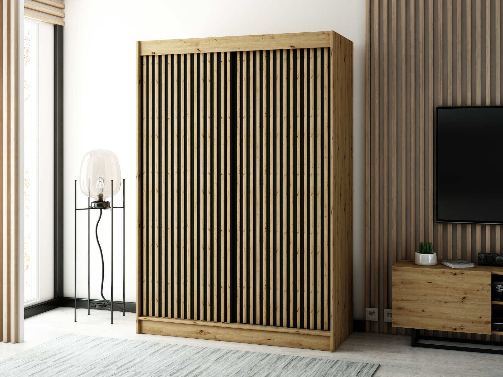 - Dulap de haine 150 cm Ladonna 1 (Stejar artisan + Negru mat)